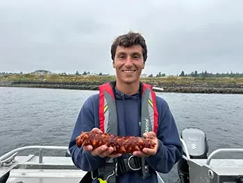 Education: Luke completed his M.S. in Biology (Marine and Estuarine Science Program) at Western Washington University in 2025. His thesis research focused on modeling the transport of Olympia oyster larvae throughout the Salish Sea to support local and state restoration efforts. He received his B.S in Biology in 2023 with a marine emphasis and minor in mathematics from Western Washington University. He is a UWC Davis Scholar alum, graduating from UWC Atlantic College in 2013.